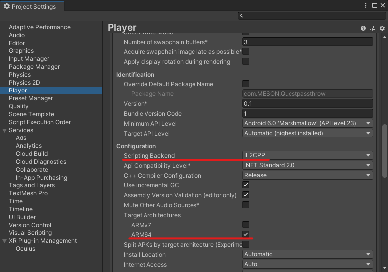 <uses-feature android:name="com.oculus.experimental.enabled" android:required="true" /> <uses-feature android:name="com.oculus.feature.PASSTHROUGH" android:required="true" />